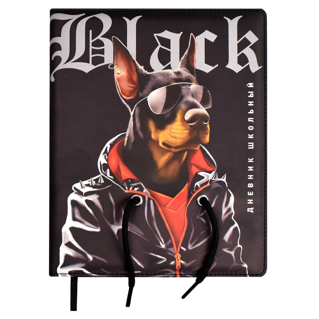 Дневник школьный арт. 66405 / 15 ДОБЕРМАН (кожзам: А5+; твёрдый переплёт с поролоном, материал обложки: искусственная кожа "Лейкер софт-тач"; декор: полноцветная печать, шнуровка декоративная в люверсах; способ крепления блока: ниткошвейный; вн. блок: 48 л., белый офсет 80 г/м?, печать в одну краску, справочный материал: универсальная шпаргалка; закладка: одно ляссе; форзац: печать в одну краску; индивидуальная упаковка: ПЭТ-пакет)