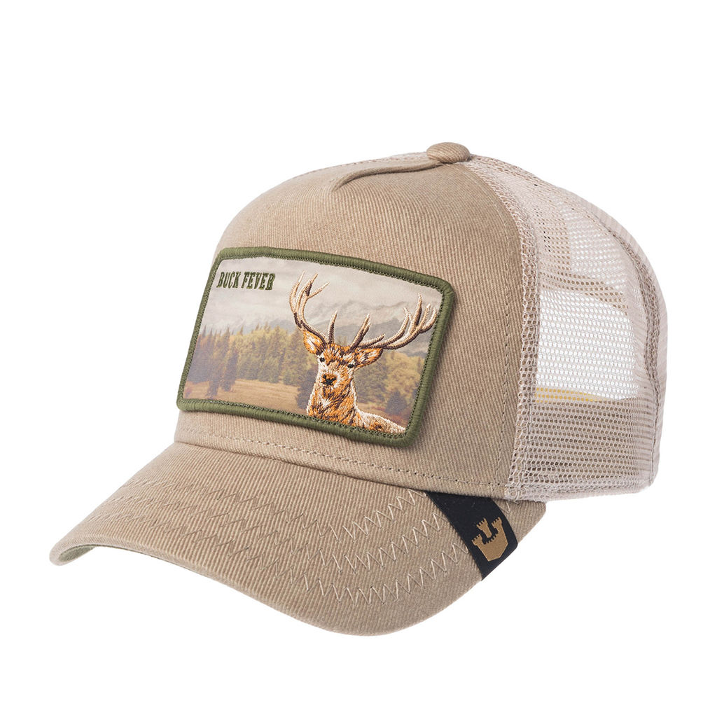 Бейсболка с бежевой сеточкой с оленем из культовой коллекции Animal Farm от американского бренда GOORIN BROTHERS . Передняя часть модели - из светло-коричневого денима. На твердой панели - патч из гладкой ткани с принтом в виде пейзажа и детализированной вышивкой с изображением оленя и надписи Buck Fever («Оленья лихорадка»). На сленге так говорят про охотничью лихорадку, нервное возбуждение при преследовании крупной дичи. Также словосочетание может означать нервную дрожь, возбужденное, приподнятое состояние в предвкушении чего-либо нового. Сбоку на изогнутом козырьке пришит ярлычок с логотипом бренда. Бейсболки Goorin Bros. – эпатаж в духе современной молодёжи. Изнанка козырька - из денима оливкового оттенка. Размер регулируется с помощью пластиковой застежки. Длина козырька – 6 см, глубина бейсболки – 11 см. Команда бренда в своих коллекциях с 2022 года обновила систему защиты от подделок: добавила текстильный ярлычок у застежки и брендированные швы, а также изменила дизайн фирменной нашивки внутри.