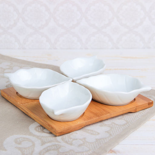 • Соусники на деревянной подставке «Эстет. Лист», 50 мл, набор 4 шт., керамика, белые