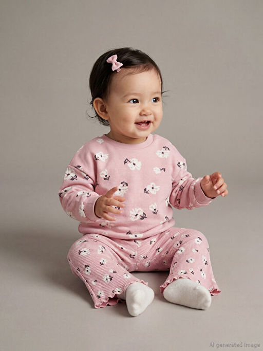 Bisiklet Yaka ?i?ekli K?z Bebek Sweatshirt ve Tayt
