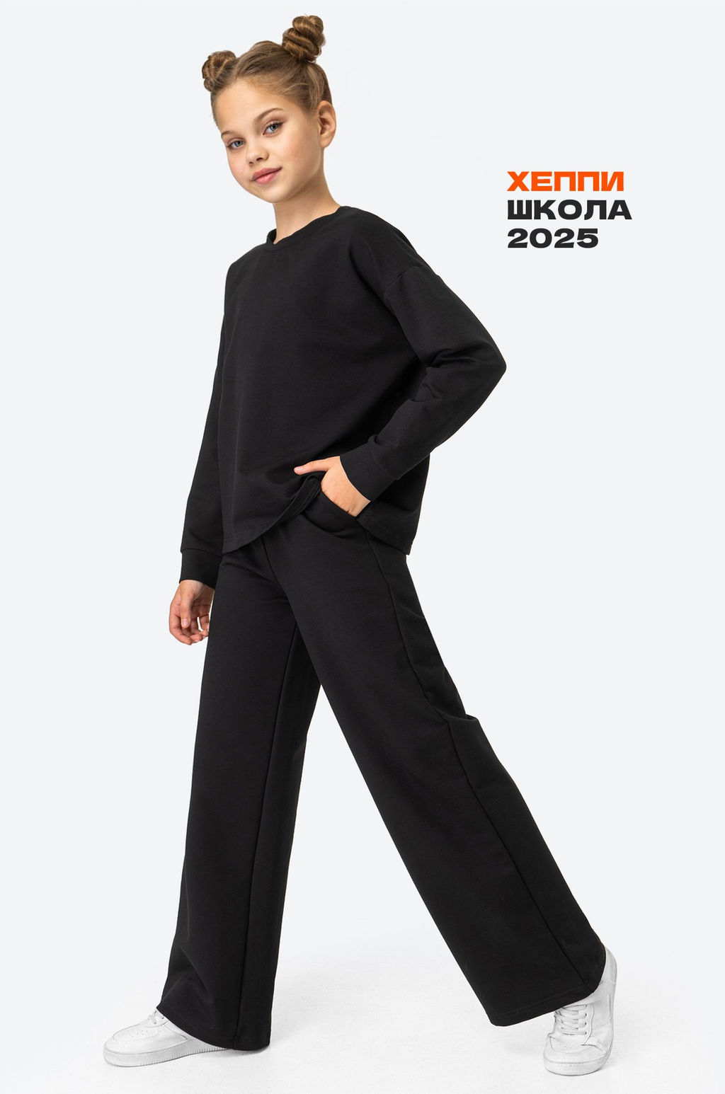 однотонный черный костюм оверсайз мягко садится по фигуре и подходит для активных будней,