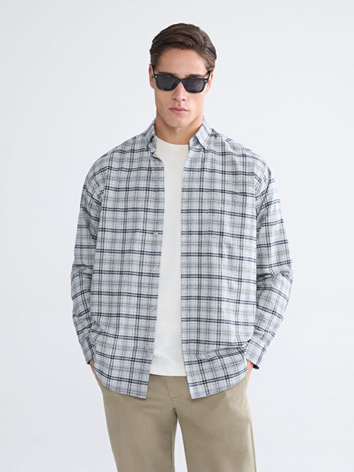 Regular Fit Uzun Kollu Ekose Gabardin Erkek G?mlek