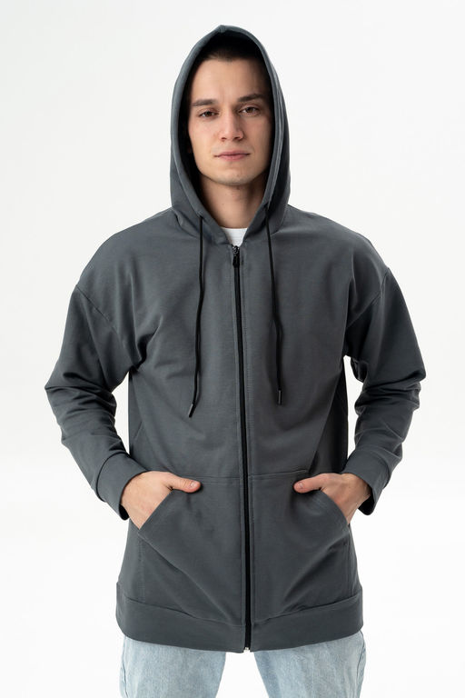 Куртка мужская из мягкого хлопкового футера имеет капюшон на шнурке, карманы кенгуру и манжеты на рукавах, благодаря чему модель смотрится стильно и модно. Рукава объемные со спущенным плечом. Идеальный вариант для тех, кто любит изделия с молнией. Обращаем внимание, что цвет изделия может немного отличаться от оттенка, представленного на фотографиях. Рост модели на фото 176 см., размер 48 размер одежды 52 Длина изделия по середине спинки 46 размер 74 см 48 размер 74 см. 50 размер 74 см. 52 размер 74 см. 54 размер 74,5 см. 56 размер 74,5 см. 58 размер 74,5 см. 60 размер 75 см.