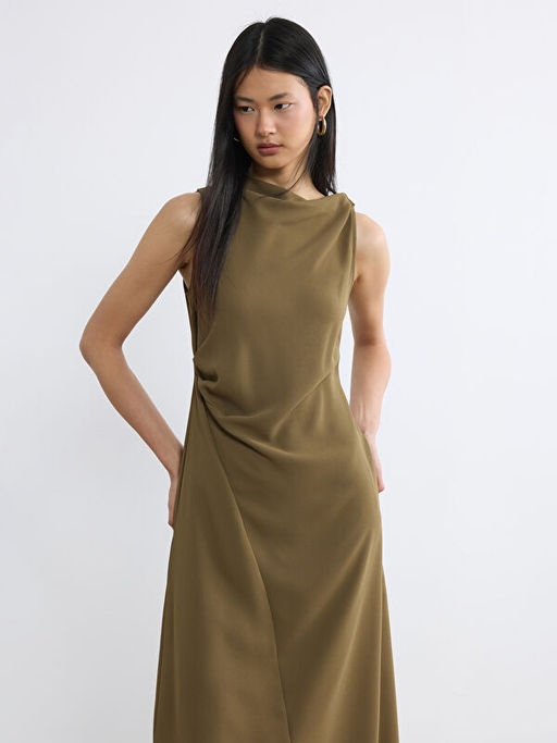• Kay?k Yaka B?zg?l? Krep Elbise