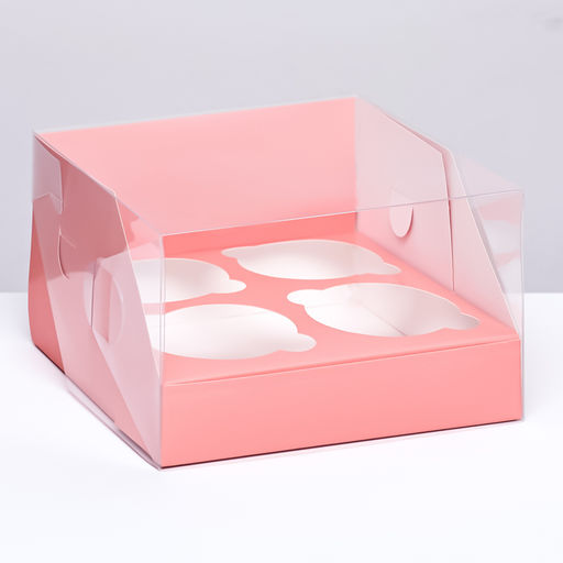 • Цена за 3 шт. Коробка для 4 капкейков 16×16×10, Розовая, кондитерская упаковка