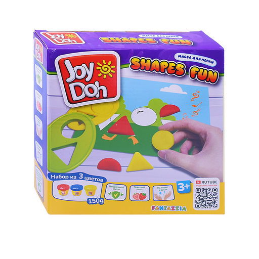 • Масса для лепки набор Shapes fun - Формы, 8 карточек с трафаретам, 12 форм и аксессуаров, 3 баночки с тестом, (3 x 50 г.)