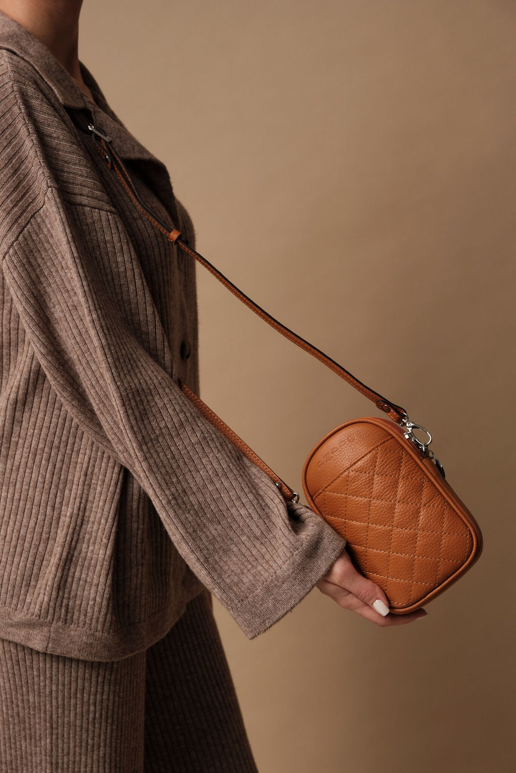 Компактная женская кожаная мини-сумка кросс-боди Azaro 30832 в цвете Оранжевый фрукт для любительниц минимализма и лаконичных аксессуаров. Детали: натуральная кожа, съемный регулируемый ремень, 1 внутреннее отделение, 1 внешний накладной карман, 1 внутренний открытый карман, водонепроницаемая хлопковая подкладка, застежка на молнию. Прямоугольная форма с закругленными краями в компактном размере позволит всегда держать под рукой телефон, кошелек, помаду и другие мелочи. Качественная кожа с приятной фактурой выглядит дорого и прослужит долго. Стеганый узор придает изысканность и делает сумку визуально интереснее. Тонкий, но прочный плечевой ремень регулируется по длине для комфортного ношения, позволяет освободить руки для повседневных дел. Эта сумка станет вашим верным спутником в любой ситуации от утренней прогулки до деловой встречи. Добавьте утончённую деталь в свой гардероб уже сегодня! -- Характеристики -- Цвет: оранжевый фрукт Материал: Натуральная кожа Бренд: Azaro Тип: Сумка на плечо, Сумка через плечо Страна-изготовитель: Россия Высота, см: 19 Ширина, см: 13 Глубина, см: 4 Материал подкладки: Хлопок Тип застежки: Молния Вес товара, г: 185 Ручки: Плечевой ремень Озон (наличие): нет Выгружать товары на сайт: Да