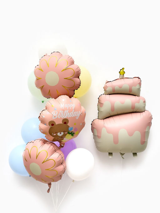 • Воздушные шары "Розовый тортик" фольга, латекс, набор 12 штук