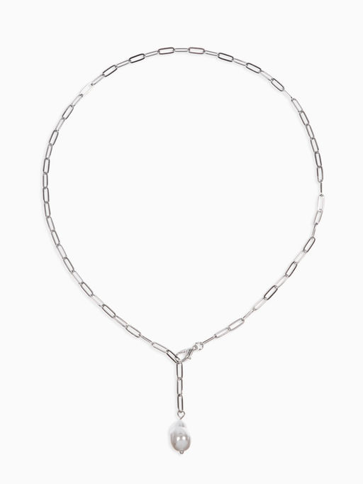 • Цена за 2 шт. Цепь с бусиной "Жемчужина", вытянутое звено, цвет белый в серебре