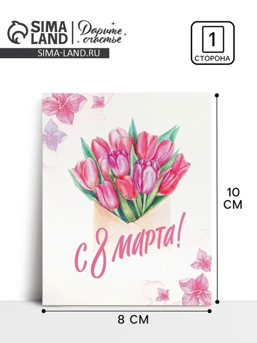 Цена за 10 шт. Открытка-мини «С 8 марта», 8×10 см