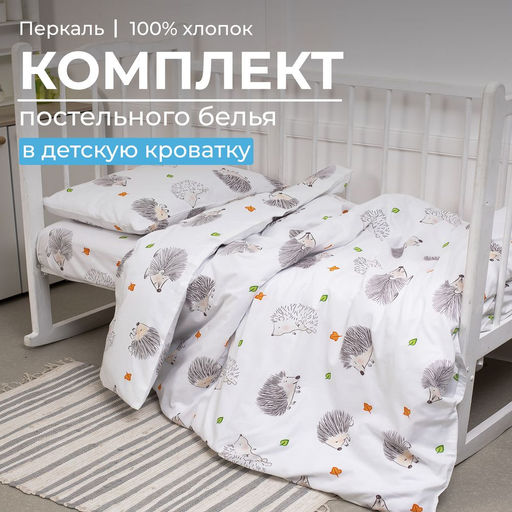 Артикул: Комплект постельного белья в детскую кроватку, перкаль (Ёжики)
