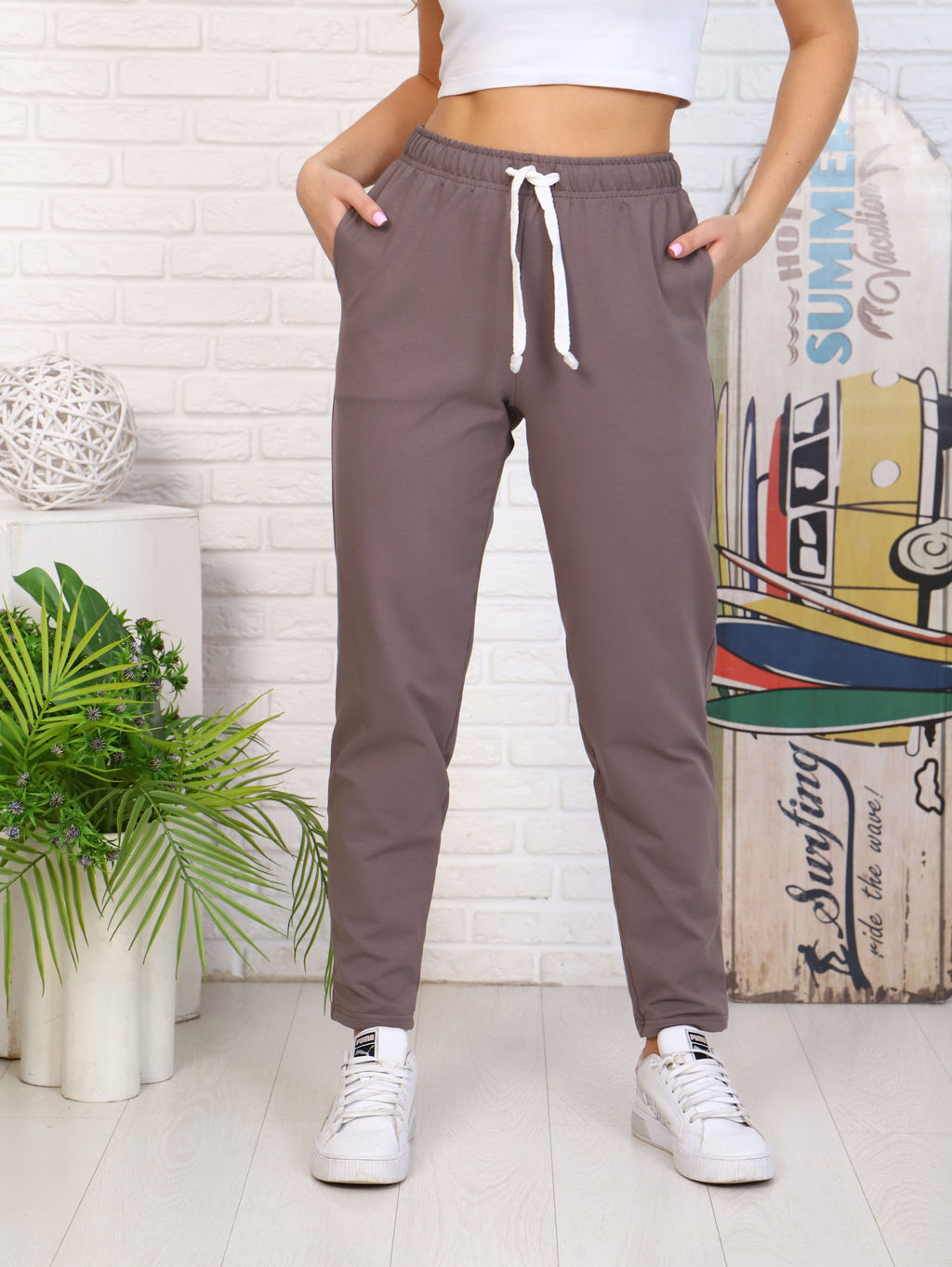 Брюки свободного кроя слегка зауженные к низу. Брюки с двумя боковыми карманами на поясе с резинкой, затягивающиеся шнуром. Длина брюк по боковому шву: 42-100 см, 44-100 см, 46-101 см, 48-101 см, 50-102 см, 52-103 см, 54-104 см, 56-105 см, 58-106 см, 60-107 см. Длина брюк по шаговому шву: 42-73 см, 44-73 см, 46-73 см. 48-73 см, 50-73 см, 52-73 см, 54-73 см, 56-73 см, 58-73 см, 60-73 см. Подкладки нет, без застежки. Плотность ткани: средняя. Карманы в боковом шве. Шнур и резинка в поясе. Посадка средняя. Уход: деликатная стирка в машине при 30 градусах отдельно от других вещей.