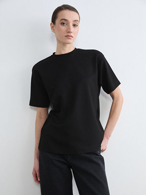 Bisiklet Yaka Ta?l? Kad?n Ti??rt