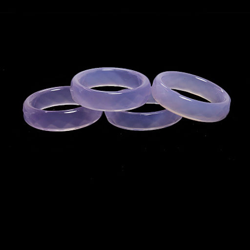 Это изысканное кольцо выполнено из цельного куска натурального сиреневого агата редкой и нежной разновидности халцедона, окрашенной в мягкие оттенки лаванды, сирени и дымчато-фиолетовых тонов. Его гладкая, отполированная поверхность переливается тонким светом, а естественные узоры и полосы придают камню глубину и загадочность. Каждое кольцо уникально, ведь природа не создаёт одинаковых узоров.