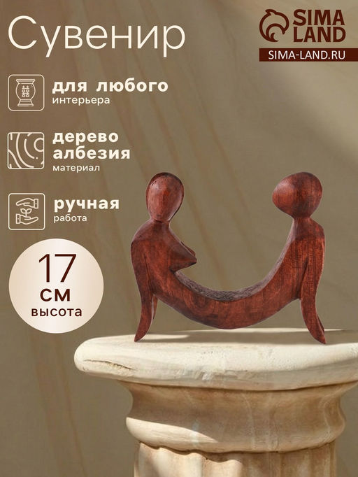 Деревянная композиция Единство минималистичная скульптура пары, вырезанная из натурального дерева и окрашенная в естественный коричневый тон. Без покрытия, без излишеств только силуэты двух людей, чьи контуры сливаются в одном движении. Такой сувенир подчеркнёт гармонию в отношениях и станет тихим напоминанием о важном в любом доме.