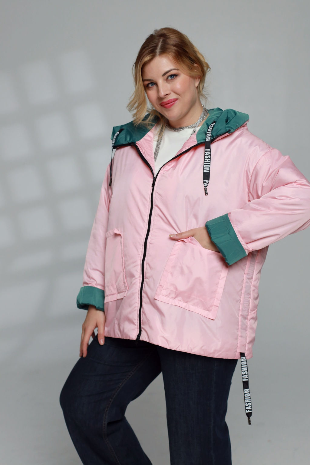 Ветровка, утепленная одним слоем синтепона прекрасно подойдет для холодной весны и осени. Модель прямого кроя, застегивается на двойную пластиковую молнию спереди. Имеет большой капюшон на широких лентах-завязках с контрастной подкладкой. Модель имеет рукава полной длины, оформленные по низу контрастным отворотом. Объемные накладные карманы по бокам добавляют практичности. Формирующие швы по спинке обеспечивают оптимальную посадку по фигуре. Длину изделия по бокам можно регулировать  лентами с модными надписями. Обладая достаточно свободным кроем, модель не сковывает движений и скрывает возможные несовершенства фигуры. В прохладную погоду ветровка не только защитит от холода, но и поможет оставаться стильной и женственной.