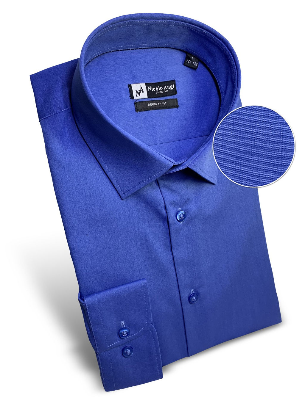 Бренд: Nicolo Angi Длина рукава рубашки: Длинный Карман: Без кармана Силуэт: Полуприталенный силуэт (regular fit) Состав: 80% хлопок, 20% полиэстер Стиль: Деловой Узор (рисунок): Без рисунка (однотонная) Цвет: Темно-голубой
