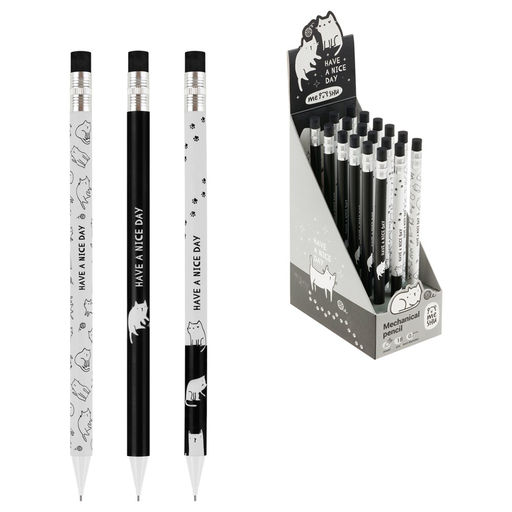 Цена за 3 шт. Карандаш автомат. MESHU "Cute pattern" 0.7мм (MS_67223) с ластиком, корпус с рисунком ассорти.