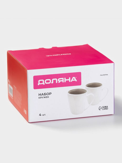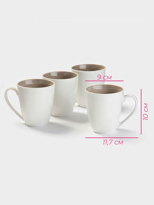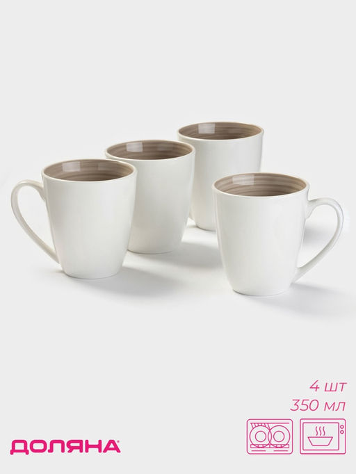 Кружки Доляна «Палитра», 350 мл, набор 4 шт., фарфор, белые, серые