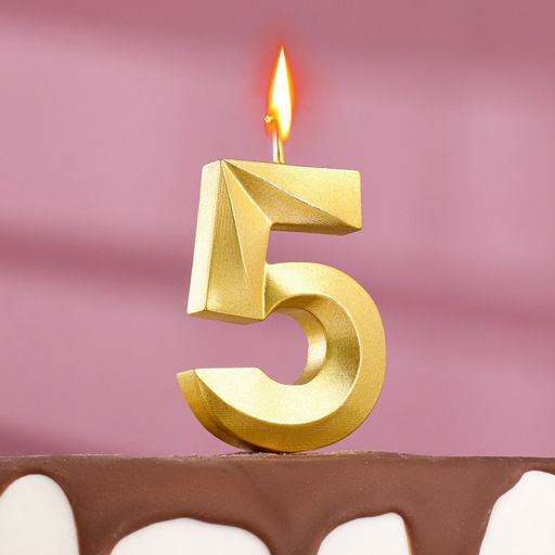 Для кого: Унисекс. В наборе, шт.: 1. Высота свечи без шпажки, см: 5.5. Высота свечи, см: 9.5. Форма свечи: Цифры. Цифра: 5. Бесплатная доставка: Да. Примечание: Размер свечи указан без шпажки..