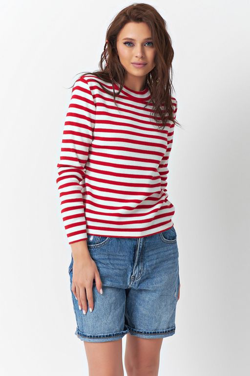 Особенности: Джемпер вязаный из полушерстяной пряжи. Горловина выполнена двойной обтачкой.