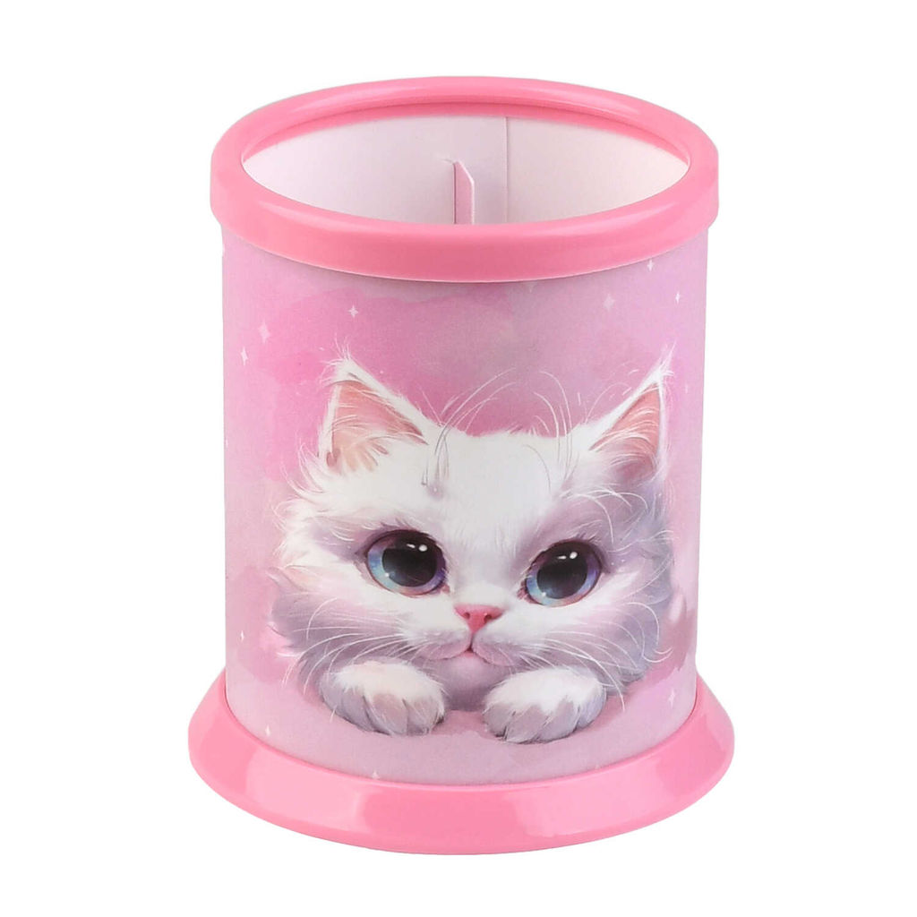 Подставка для канцелярских принадлежностей Феникс+, арт.73379/ 48 БЕЛЫЙ КОТ (7,6х10 см, полипропилен, цвет: розовый, УФ-печать, полноцветный дизайн, 1 отделение (-ия), ПЭТ-пакет с европодвесом и картонным вкладышем).