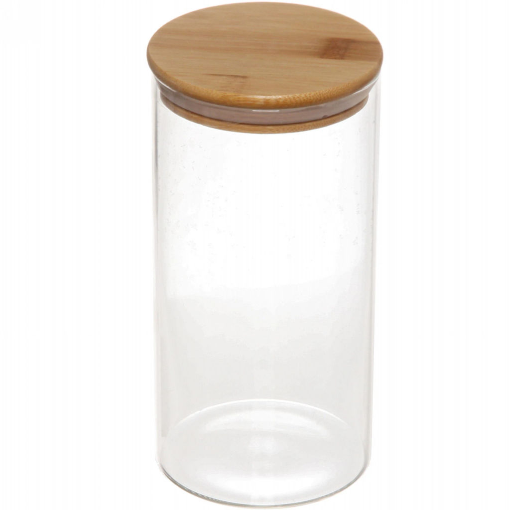 Банка для продуктов стеклянная 1200мл "Хай-Тек" с бамбуковой крышкой 10*20см