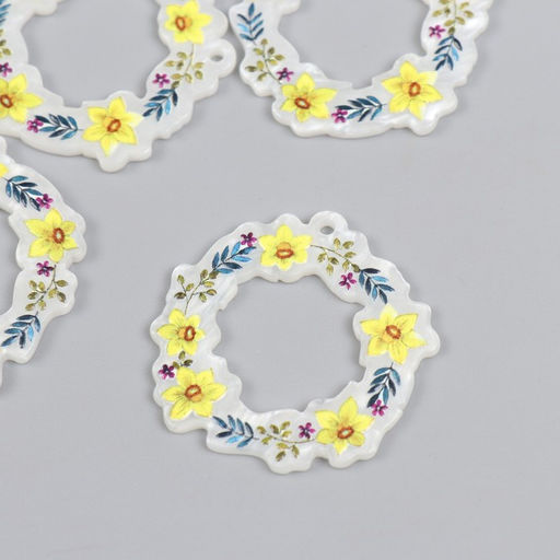 Цена за 4 шт. Декор для творчества акрил Веночек с жёлтыми цветами, 0.2?3.9?3.9 см