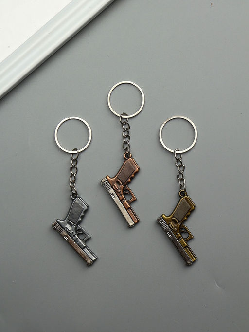 Цена за 12 шт. Брелок металл "Пистолет" двигается затвор МИКС 3х4,3х0,5 см