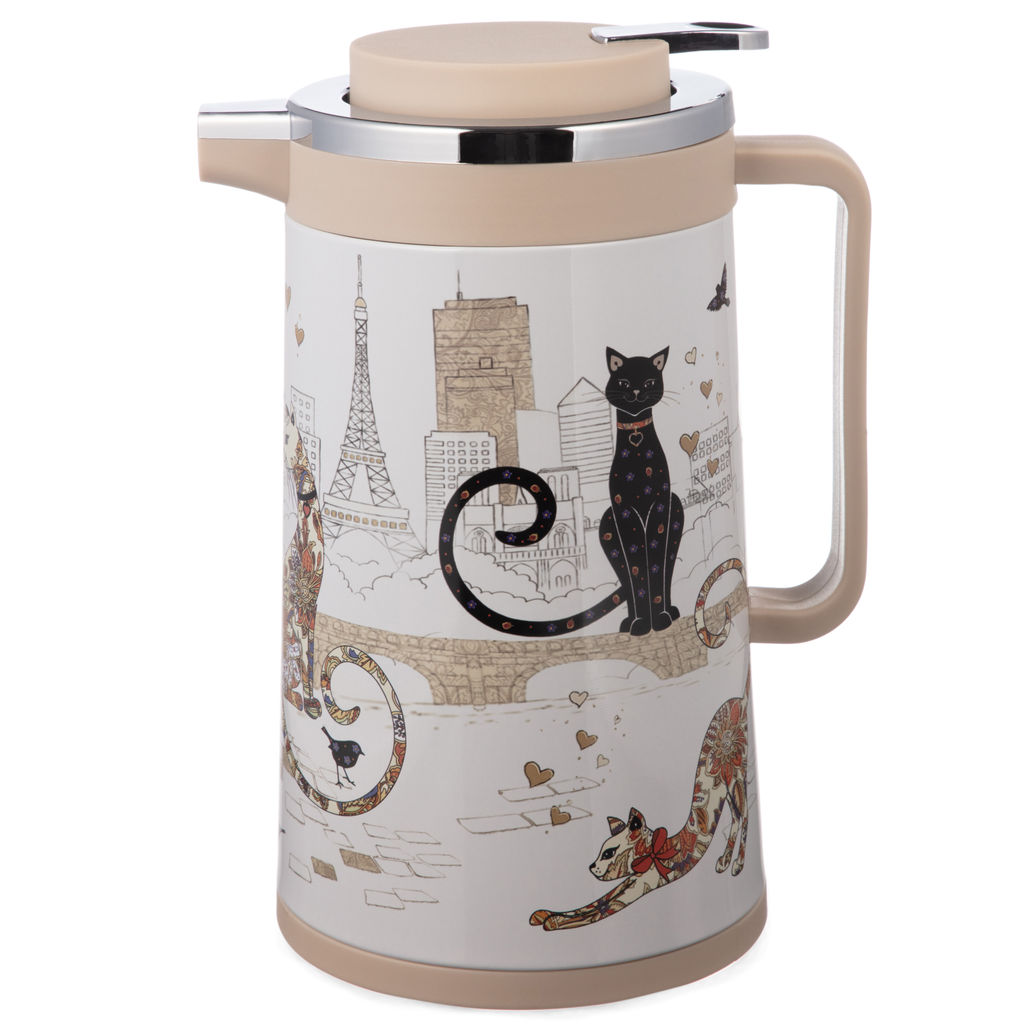 • ТЕРМОС СО СТЕКЛЯННОЙ КОЛБОЙ, 950 МЛ, КРЫШКА С КЛАПАНОМ, СЕРИЯ ПАРИЖСКИЕ КОТЫ
