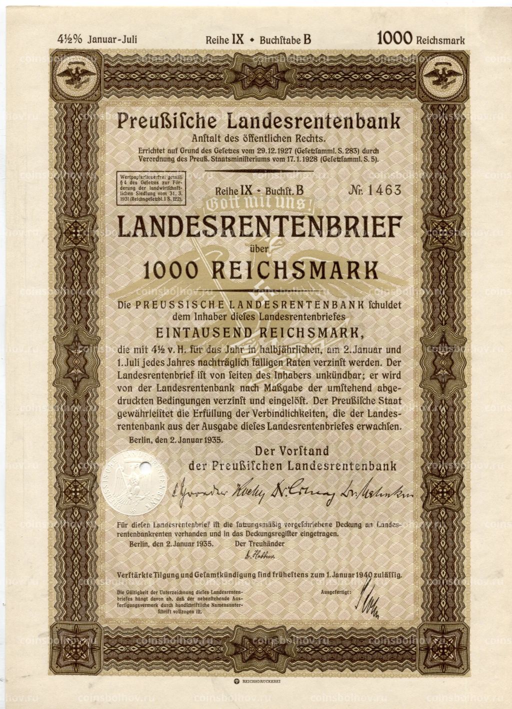 • Облигация 4,5% 1000 рейхсмарок 1935 года Германия