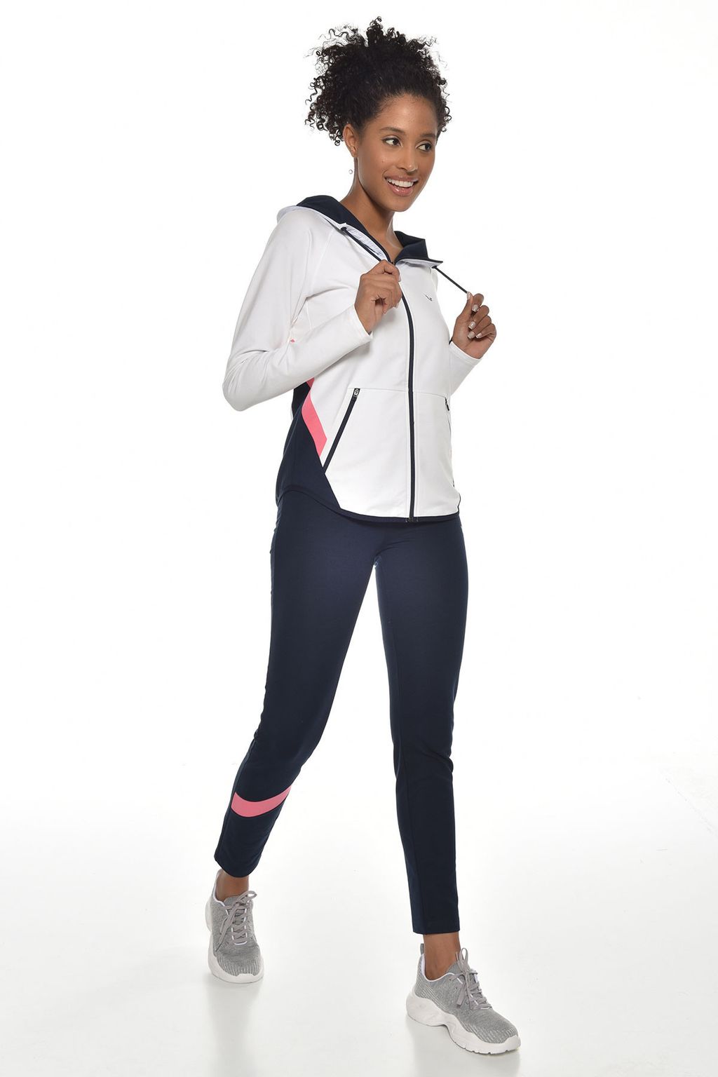 Женский спортивный костюм состоит из толстовки и брюк. Благодаря используемой хлопковой нити имеет гигиеничную, прочную и долговечную структуру. Благодаря своей влагопоглощающей способности он уравновешивает температуру тела, отводя пот. Полиэстер быстро сохнет, так как при стирке впитывает очень мало воды. Толстовка на молнии и зауженные брюки обеспечат не только комфорт, но и стиль.