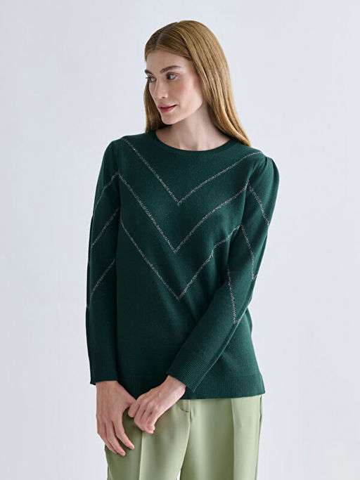• Bisiklet Yaka ?izgili Kad?n Triko Kazak