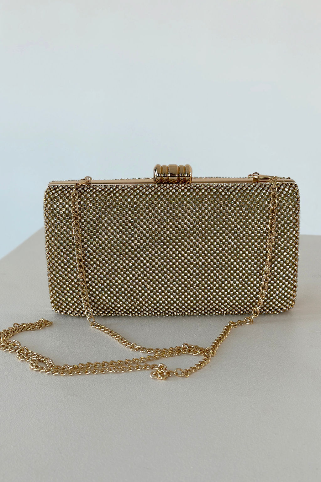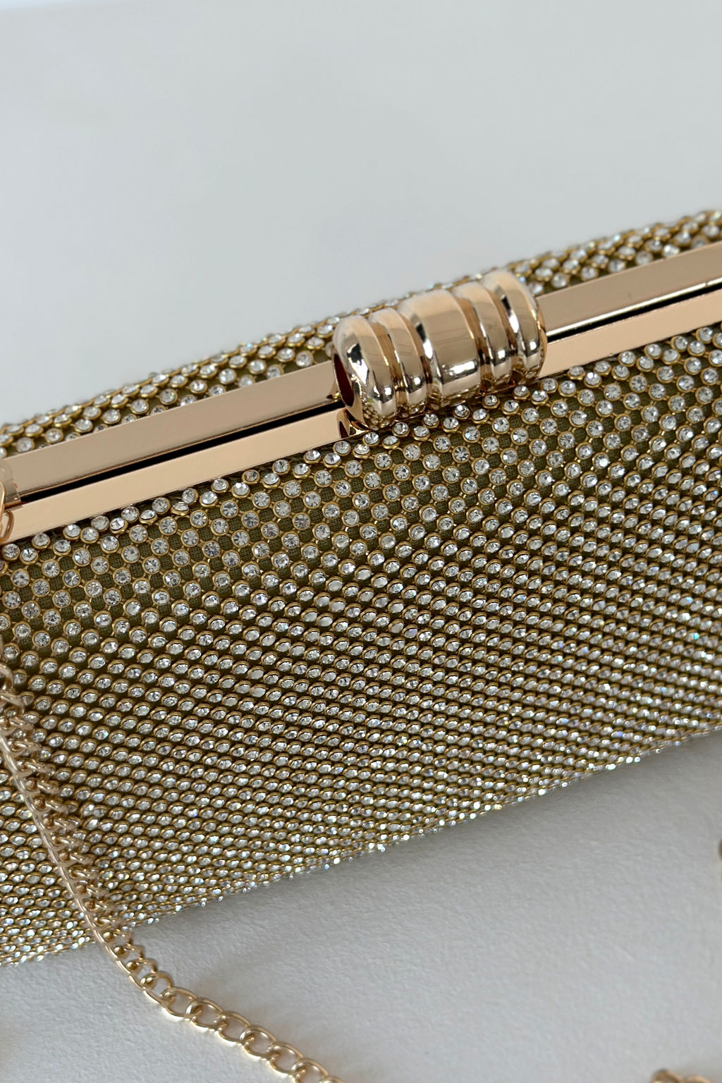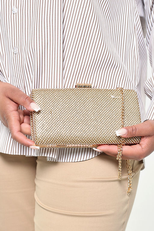 Сумка-клатч со стразами золотистая­