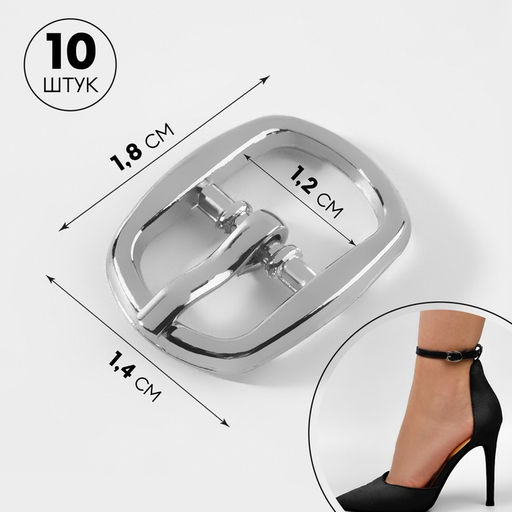 • Пряжка, 1.8×1.4 см, 12 мм, 10 шт., цвет серебряный