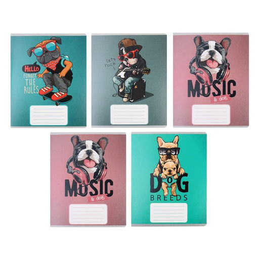 Цена за 20 шт. Тетрадь 12 листов в узкую линию Calligrata "Собачий стиль", обложка мелованный картон, ВД-лак, блок офсет, белизна 95%, МИКС