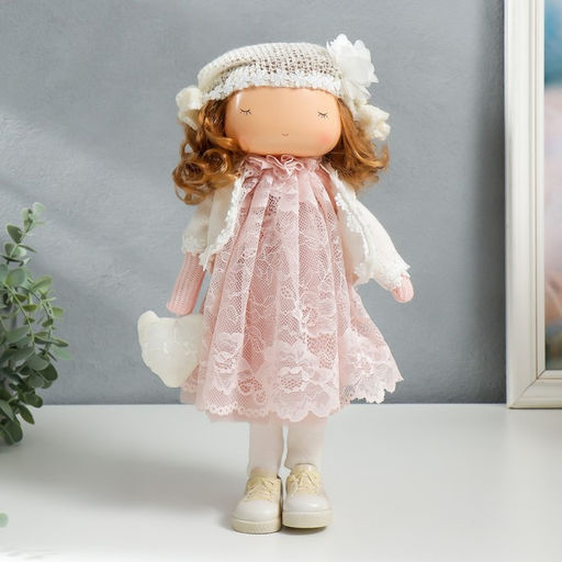 Интерьерная кукла текстильная Малышка в платье с кружевом, с сердечком, 36.5?14?15.5 см