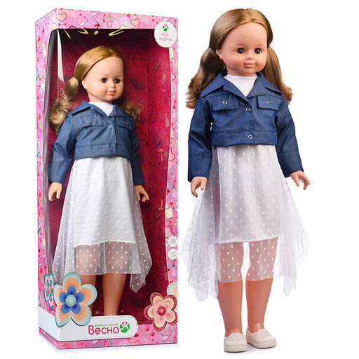 В комплект одежды входит: летнее платье и куртка из джинсовой ткани. Комплект дополняют туфли. Наличие элементов одежды, которые легко снимаются и надеваются, разнообразит возможности сюжетно-ролевых игр с этой куклой, в процессе которых развивается мелкая моторика и творческое воображение ребёнка.