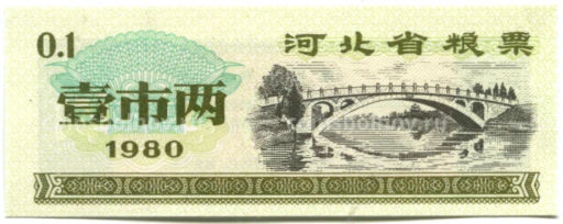 Банкнота Продовольственный талон (Рисовые деньги) 0,1 единицы 1980 года Китай