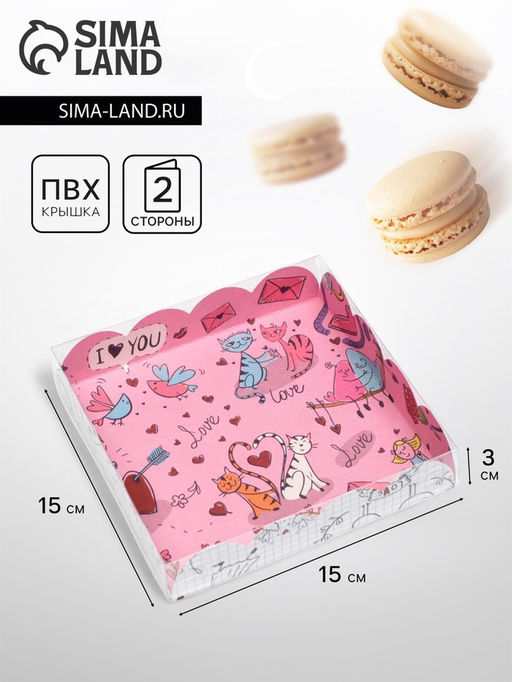 • Цена за 5 шт. Коробка для печенья, LoVe, 15×15×3 см