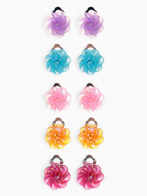 Цена за 6 шт. Серьги клипсы детские Выбражулька «Блестящие цветы», миксы