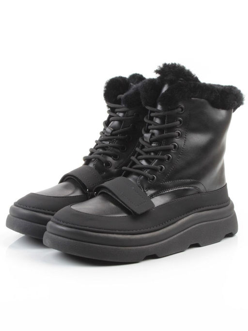 • 04-PAJ76-1Z BLACK Ботинки зимние женские (натуральная кожа, натуральный мех, 100% шерсть)