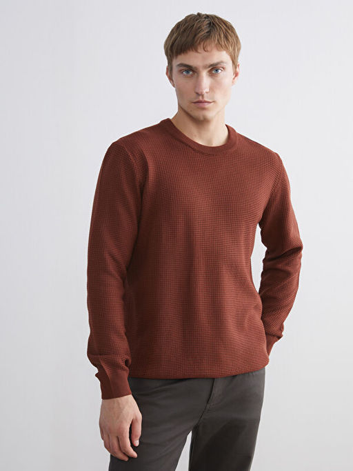 Bisiklet Yaka Kareli Erkek Triko Kazak