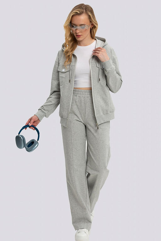 Уютные костюмы из футера уверенно завоевали сердца людей. Они удобные, практичные, легко вписываются в повседневный городской стиль. Данная модель состоит из толстовки и брюк свободного объема. Толстовка по покрою напоминает джинсовую куртку, что смотрится очень оригинально. Капюшон со шнурком, 4 действующих кармана, застежка на молнию о чем еще можно мечтать! Комфорт и удобство! Цветовая гамма удовлетворит вкус любой покупательницы. Обращаем ваше внимание на новый цвет в нашей палитре светло-серый меланж - любимая расцветка современной девушки. Состав трикотажа: 75% хлопок, 20% полиэстер, 5% спандекс.­