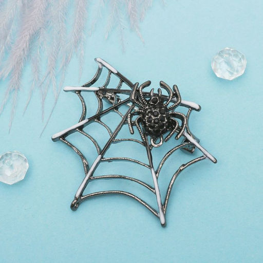 Цена за 2 шт. Брошь «Паук в паутине», черно-белая в серебре