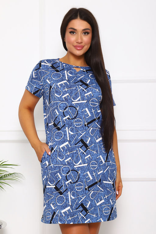 Туника женская прямого покроя. На горловине переда декоративный разрез. Вырез горловины в форме «лодочки». В боковом шве — карманы.