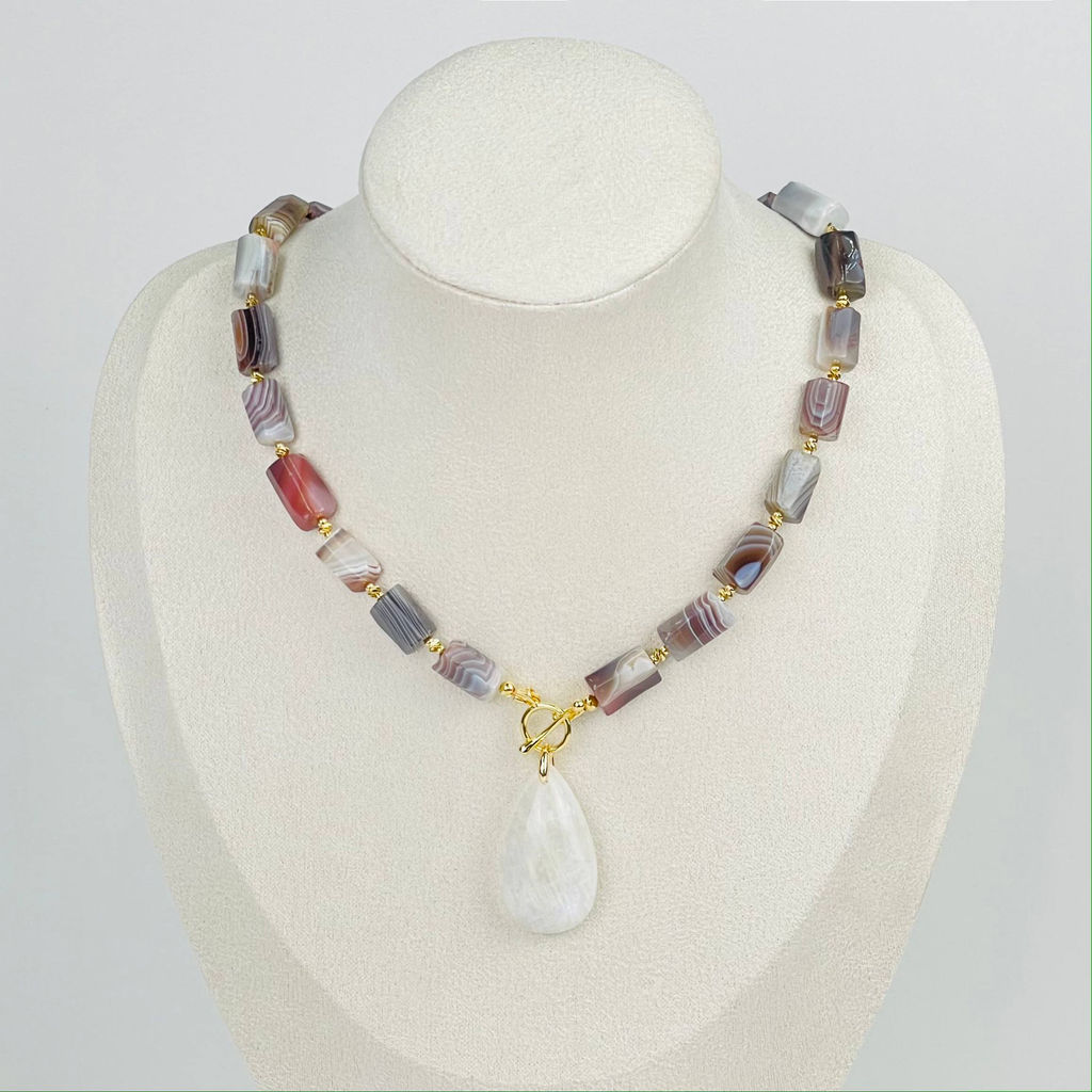 • Колье из ботсванского Агата и Лунного камня 42 см