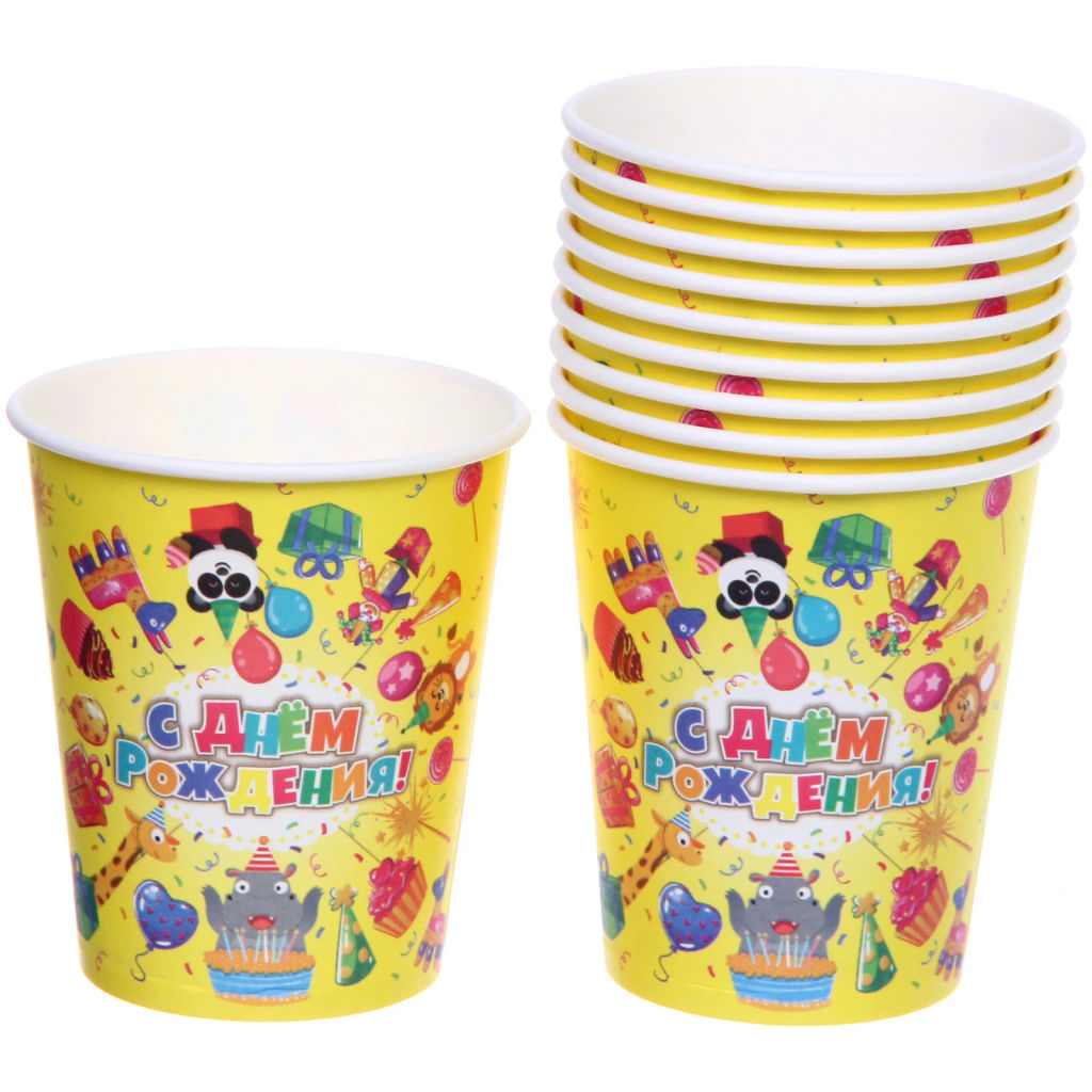 Стакан бумажный 0,2л в наборе 10 шт "С днем рождения! Зверюшки"