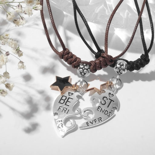 • Кулоны на шнурке «Неразлучники» половинки сердца со звёздами, цвет чёрно-коричневый, 43 см