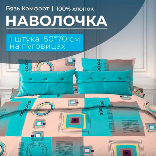 Артикул: Наволочка 50*70 см, бязь "Комфорт", на пуговицах (Графика, бирюзовый)